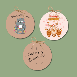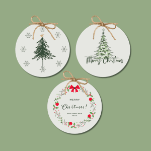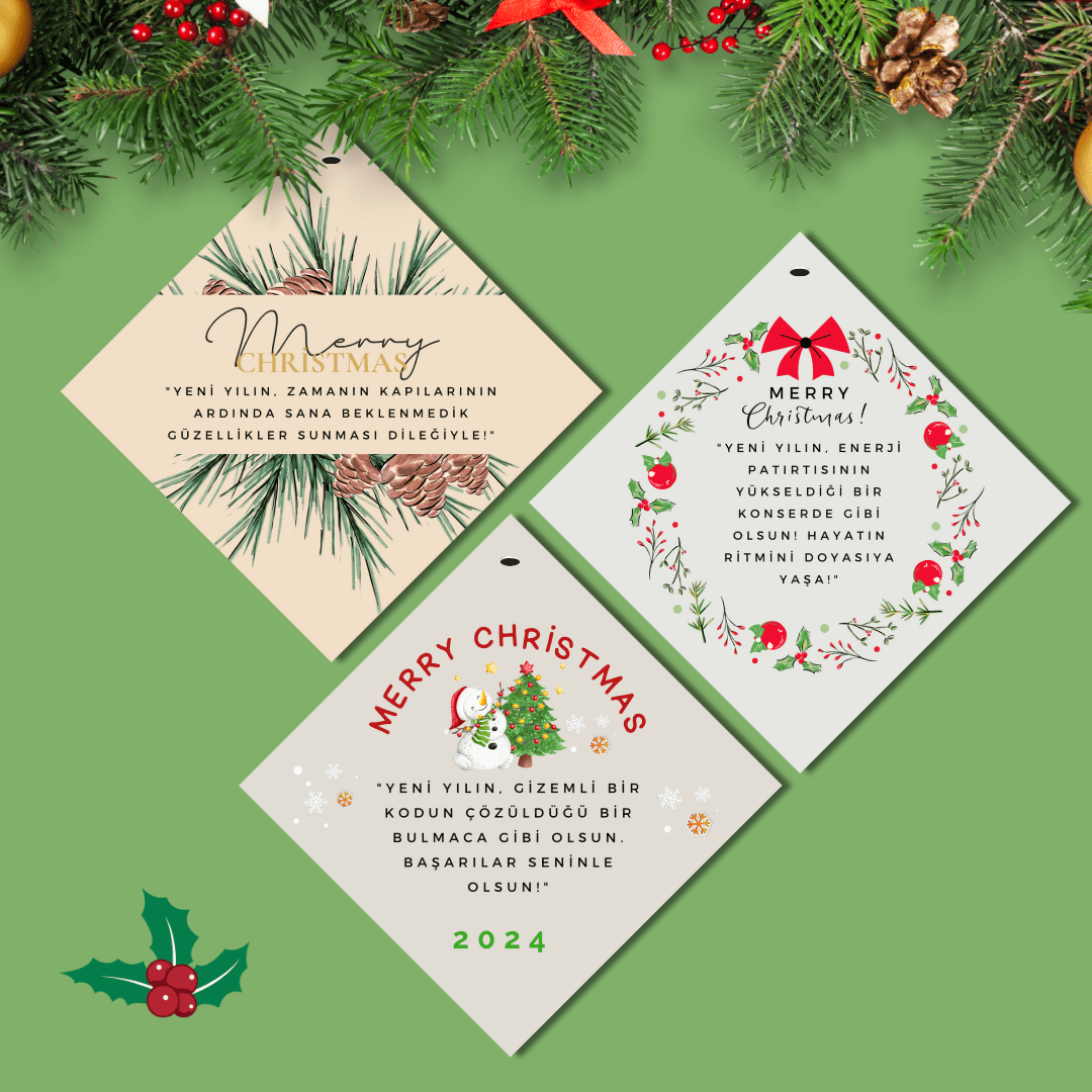 3’lü Yuvarlak Merry Christmas ve Çam Ağacı Temalı Yılbaşı Ağaç Süsü