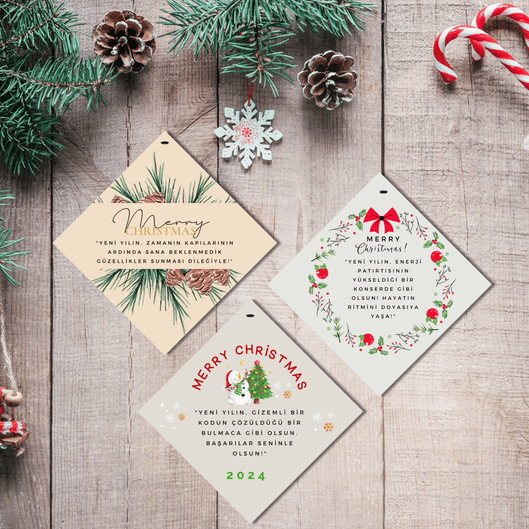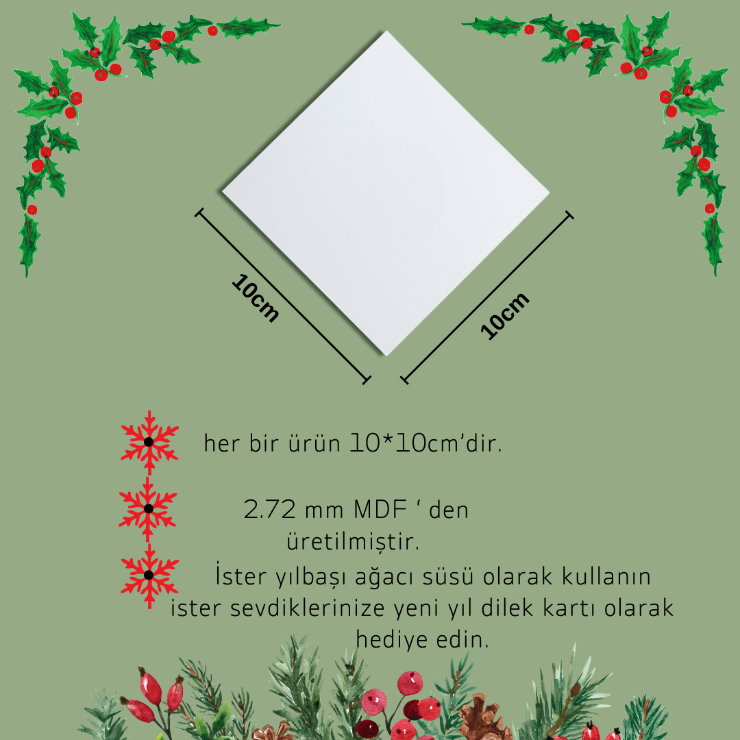 10×10 cm Ahşap Mdf Yeni Yıl Dilek Kartları