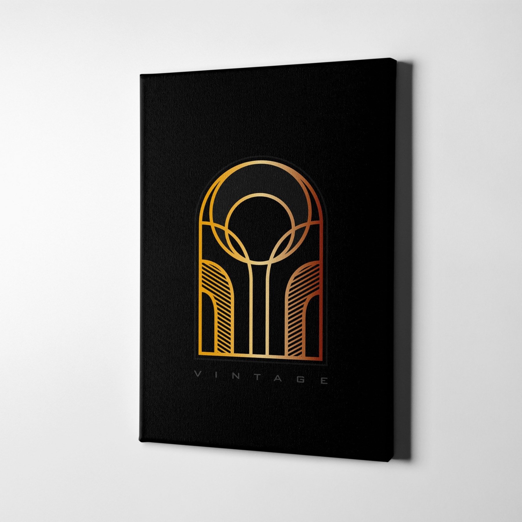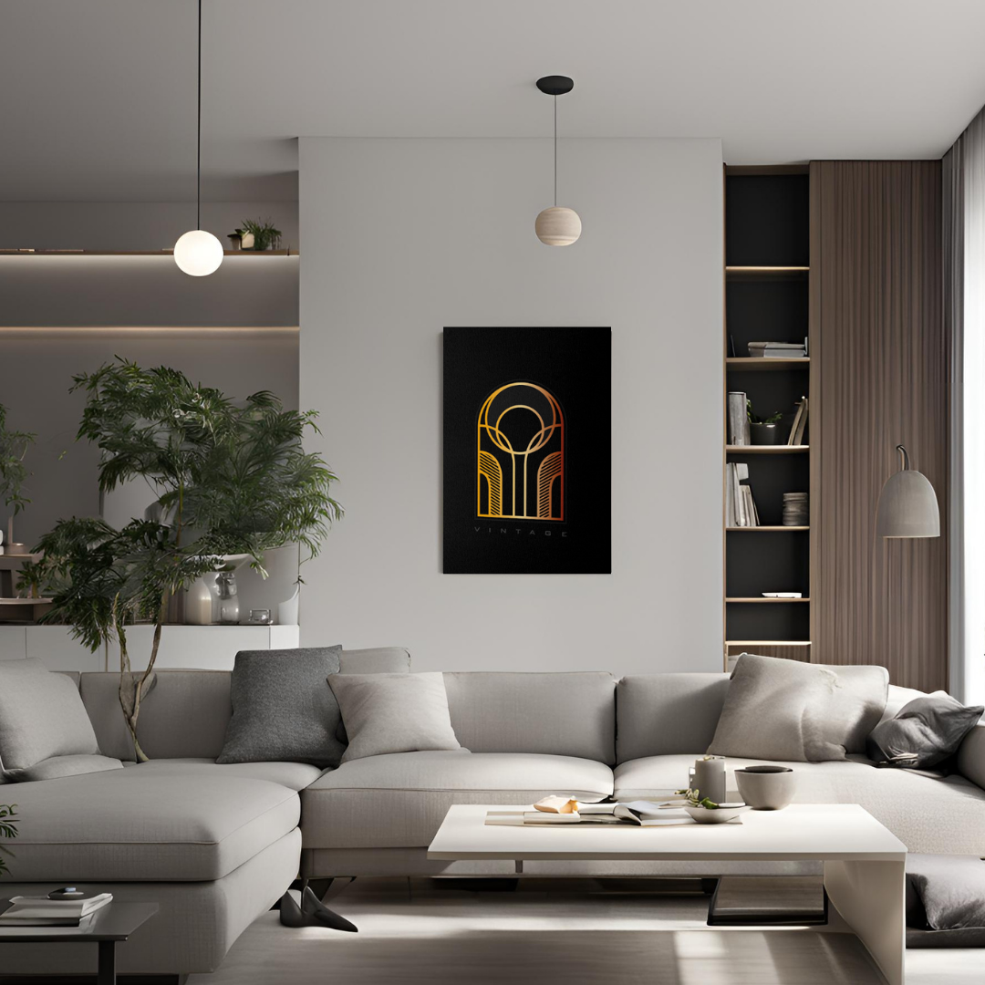Soyut Geometrik Daire ve ve Çizgiler İçeren Minimalist Gold Kanvas Tablo