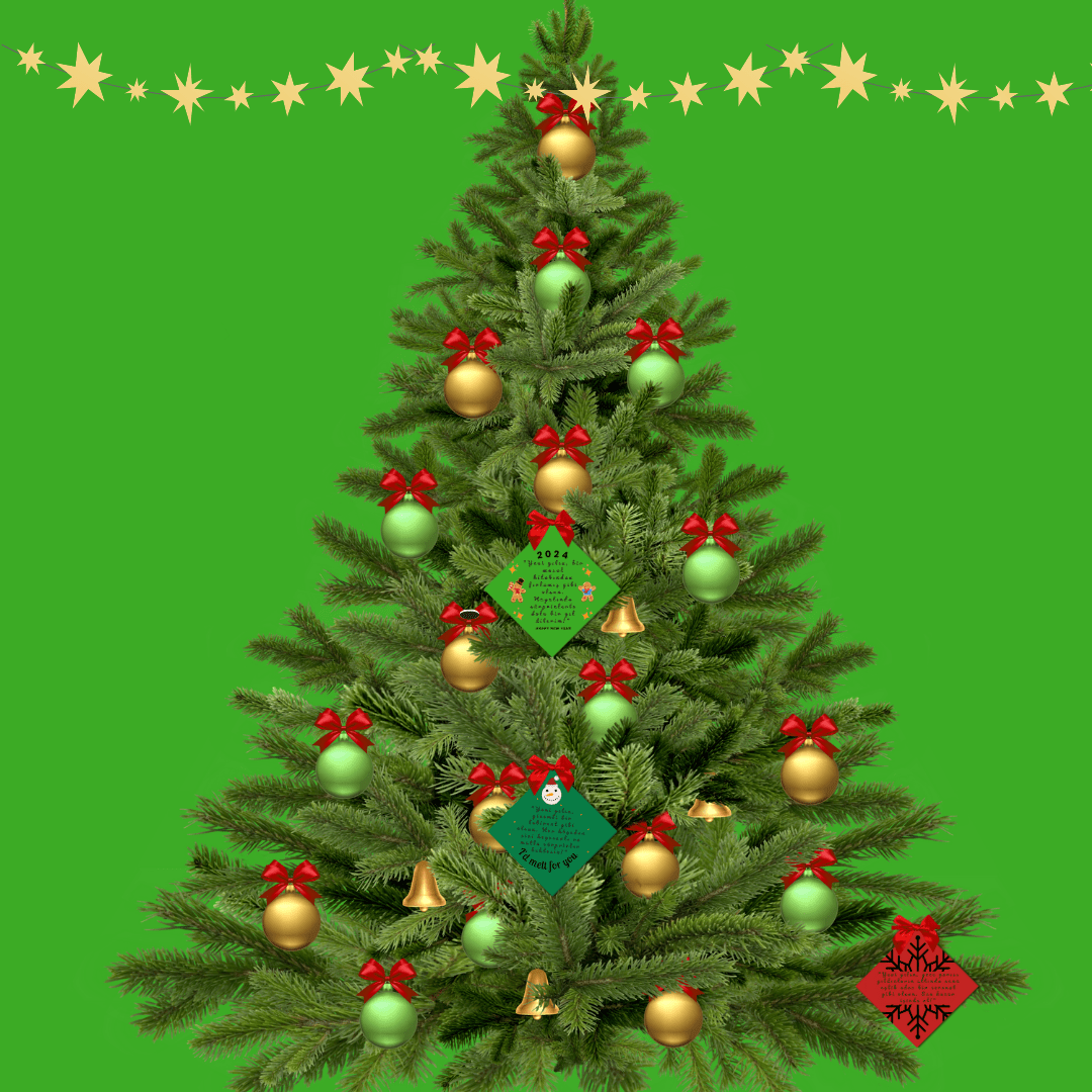 Yeni Yıl Dileklenin Yazılı Olduğu 3 lü Yeşil ve Kırmızı Tonlarda Yılbaşı Ağaç Süsü