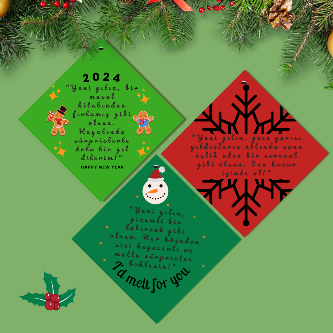 10×10 cm Ahşap Mdf Yeni Yıl Dilek Kartları